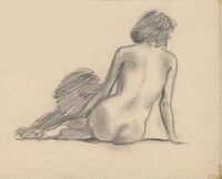 Espalda de mujer Apunte de un desnudo de mujer vista de espaldas: contrasta el “esfumato” sensual de la espalda y el cuerpo en general de la modelo, con las bruscas sombras a base de gruesas paralelas de la pared donde se refleja.