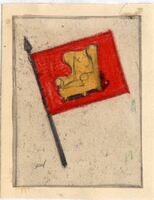 La Oca y los extremeños se tocan Sobre un fondo claro y en posición inclinada se toma como motivo principal en este dibujo enmarcado una bandera con su tela de fondo rojo y un sofá amarillo dibujado en el centro. Hacia la derecha inferior se vislumbra el boceto de la firma del pintorBoceto realizado para la ilustración de la revista semanal Novelas y Cuentos. Titulo: La Oca y los extremeños se tocan. Autor: Pedro Muñoz Seca. Nº publicado: 959. Fecha: 25-09-1949. Tomo NC. 5