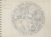 Anverso de la medalla, lema "Integración" Boceto a lápiz del anverso de la medalla Integración, con la imagen de unos barcos a la deriva en medio del mar con unas garras que salen del oleaje para capturarlos, en el perfil de la medalla se lee “La bravura del mar aquellos bravos marineros.”Realizada para un concurso. Otros Archivos.:MEN/1658-1808 MEP/1752 MBR/1458 MG/falta ficha.