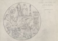 Anverso de la medalla de la Comunidad de Aragón Boceto a lápiz del anverso de la medalla de la Comunidad de Aragón. En primer término doña Agustina de Aragón junto a un cañón junto a elementos característicos de la región.