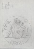 Anverso Virgo Boceto a lápiz del anverso de la medalla correspondiente al signo virgo, representado con la imagen de una mujer desnuda, de espaldas. Junto a la medalla, anotaciones a lápiz del autor.