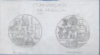 Anverso y reverso de la comunidad de Aragón Boceto a lápiz del anverso y reverso de una medalla donde se aprecia diferentes imágenes y figuras representativas de la comunidad de Aragón, en un estado muy primario de su ejecución.Cdad. De Aragon anverso y reverso para Numismática Iberica ME/Esng/1648 y 1690. ME/Br/1372.