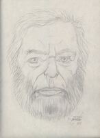Autorretrato Dibujo, quizá apunte para el conocido autorretrato. La sabia utilización de líneas de contorno nos hacen fijarnos hasta el hipnotismo en la profunda y penetrante mirada-automirada del artista.