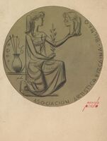 Asociación Artística Vizcaina-Bilbao Boceto a lápiz de la escena del anverso de una medalla donde se representa la imagen de una mujer de rodillas con una de ellas en alto, en una de sus manos con la palma extendida mira a la cabeza esculpida de si misma, mientras que en la otra sujeta una rama larga, detrás la silueta de una paleta de pintor y un jarrón con pinceles.Este boceto modificado se hizo para la medalla de Petroliber