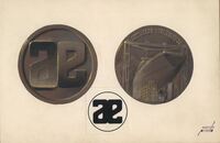 Astilleros Españoles Dibujo que representa las dos caras de una medalla perteneciente a Astilleros Españoles, en una de ellas el logotipo de la empresa y a su lado el dibujo de la construcción de un barco.Medalla realizada para la Casa de la Moneda. OTROS ARCHIVOS: MBR/1479.Img.1