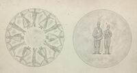 Boceto de una medalla de baile "LA SARDANA" Boceto lápiz de las dos caras de una medalla, en una de ellas se aprecia a un grupo de personas vestidas con trajes típicos de una región cogidos entre sí formando un círculo que ocupa todo el campo de la medalla, a su lado la escena de una pareja de hombres vestidos con trajes regionales donde uno de ellos toca el tambor.Boceto representando el baile de la sardana, anverso y reverso. No tenemos constancia de su realización. Titulo LA SARDANA. OTROS ARCHIVOS: