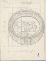 Boceto de una medalla Boceto a lápiz de una de las caras de una medalla conmemorativa de una centenaria plaza de toros con la imagen de dicha plaza en cuyo ruedo se aprecian dos cartelas con las fechas de su inauguración y la actual.Por encargo del Ayuntamiento de El Puerto de Santa maria. Anverso del centenario de la plaza de El Puerto Archivos relacionados. Mbo/560-520-560. MB/.1436