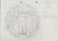 Boceto del anverso de la medalla nº 16 seri V Centenario del descubrimiento de América. Boceto a lápiz del anverso de la medalla número dieciséis donde se representa a una flota de barcos que ocupan todo el campo de la medalla en cuyo perfil podemos leer “segundo viaje 25 de Septiembre de 1493.”realizada para Numismatica Iberica serie V Centenario. OTROS ARCHIVOS: MBO/410+463 MEN/1790 MBR/1360