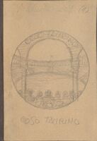 Coso Taurino                Boceto a lápiz con fondo cuadriculado, de la imagen de un coso taurino a través de la perspectiva de un arco, con apuntes a lápiz del título y la numeración (1). La extraña perspectiva nos hace adentrarnos en la escena como a través de una cerradura.