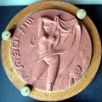 Danza                Molde de escayola, con barniz de goma laca, de la cara de una medalla con la imagen de una mujer bailando con un traje semitransparente que se levanta hasta medio cuerpo dejando a la vista sus partes más íntimas.Medalla original de pastelina Serie Manolo Prieto Otros archivos: Mbo/355 Men/1832 MG/1555 + 1739. Son medallas rezlizadas por Manolo Prieto para Exposiciones con la FIDEM