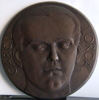 García Lorca Fotografía de la cara del una medalla con el retrato del poeta granadino García Lorca. No nos podemos detener en este repaso a su obra completa, a la dificultad técnica de un retrato medallístico a una cara vista de frente.Sin mas referencias. Otros Archivos.: MBO/517 MEP/1686