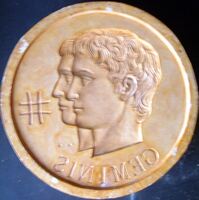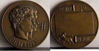 Géminis Dos bustos masculinos de perfil y en alto relieve se han representado en el centro de esta medalla firmada en donde se puede leer “géminis” en su parte inferior haciendo alusión al signo del zodíaco.