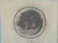 Fábrica Nacional de Moneda y Timbre Boceto a lápiz de una de las caras de una medalla conmemorativa de la Fábrica Nacional de moneda y timbre, con la imagen central de la figura esquemática de un hombre cincelando el metal.Un estudio sobre una medalla para La Fabrica Nacional de Moneda y Timbre.