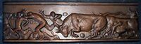 Friso Interior del molde en positivo del bajorrelieve de un friso donde se representa la escena de unos mozos corriendo delante de los toros en un encierro, y que tiene que ver con la provincia de Navarra.