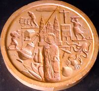 Galicia Molde de escayola del negativo de una medalla de la Comunidad Gallega, con la imagen de el Patrón de España Santiago el Mayor junto al botafumeiro y la fachada de la Catedral de Santiago de Compostela, la figura de un peregrino, y las distintas delicias del mar que se pueden degustar en dicha comunidad.