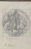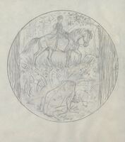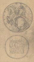 Lady Godiva bocetos Boceto a lápiz de las caras de una medalla que representa, en el anverso, la imagen de Lady Godiva, que va desnuda para la sensación de libertad, sobre el caballo y en el reverso un destacamento de soldados.Sin referencias, boceto para futura medalla