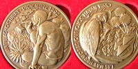 Antillas. Octubre 1492. Las más hermosas que ojos hayan visto. Titulo"Islas Antillas. La Española" anverso y reverso Dos pequeñas medallas de bronce en que se representa a un indio fumando y a un loro; tanto una como otra medallas nos hablan de la extraordinaria novedad que tuvo que suponer para Europa es Descubrimiento del Nuevo Mundo.Numismatica Iberica anverso yreverso. OTROS ARCHIVOS MBO/402+451+452