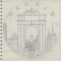 Madrid Boceto a lápiz de una de las caras de una medalla conmemorativa de Madrid, donde se representa la Puerta de Alcalá como edifico central junto a otros significativos de la ciudad.boceto realizado para AcuñacionesEspañolas Otros archivos relacionados: MBO/603-659 MBR/1478