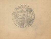 Medalla al mérito taurino Boceto a lápiz de una de las caras de la medalla al mérito taurino, con la imagen de un torero vestido de luces de espaldas, sujetando su capote, y rodeado por una rama de laurel.Sin referencias.