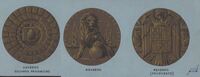 Medalla del Ilustre Colegio Nacional de Economistas, boceto Medalla del Ilustre Colegio Nacional de Economistas en cuyo anverso se aprecia la figura de un santo sujetando una espada y un libro y en su reverso una corona de espigas y trigo con la imagen central de una abeja reina.boceto para el Ilustre colegio nacional de economistas. Otros archivos: MBR/1502