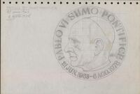Medalla de Pablo VI. Boceto a lápiz de una de las caras de una medalla conmemorativa del Papa Pablo VI, con el perfil, mirando hacia la izquierda, del pontífice rodeado por su nombre y los años de pontificado.realizada para el Instituto Numismático. Otros Archivos.: MEN/ 1786