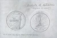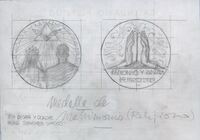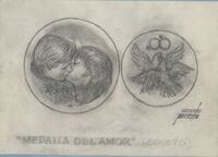 Medalla del amor Boceto a lápiz de las caras de la medalla del amor, en el anverso la imagen de una pareja de perfil besándose junto al reverso donde se aprecia da dos tórtolas besándose también con las alas abiertas junto a los signos identificativos de hombre y mujer.Para Numismática Ibérica, otro estudio
