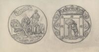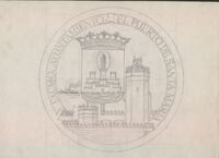 Medalla del Puerto de Santa María Boceto a lápiz de una de las caras de una medalla representativa del Puerto de Santa María, con la imagen de edificios arquitectónicos simbólicos de la ciudad, junto al escudo del excelentísimo ayuntamiento del Puerto.Medalla commemorativa de los 100 años de la Plaza de toros de El Puerto de Santa María. Otros Archivos.: MBR/1436