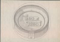 Medalla conmemorativa de una plaza de toros Boceto a lápiz de la cara de una medalla conmemorativa de la Plaza de Toros del Puerto, donde en el centro del ruedo se aprecia dos fechas en diferentes cartelas que indican los cien años de su existencia.Para el Exmo. Ayto. de El Puerto der Santa María Cadiz. Otros Archivos.: MBR/1436