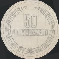 Medalla del cincuenta aniversario reverso de Mutualidad de la Prevision I.N.P- Boceto a lápiz sobre fondo cuadriculado de una medalla conmemorativa celebrando el cincuenta aniversario, con una rama de laurel esquematizada en cuyo interior aparece la leyenda correspondiente.Reverso de medalla de Mutualidad de la Prevision I.N.P para D. Faustino de Castro. OTROS ARCHIVOS: ME/Br(1470.1Img-1)