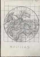 Mulillas Boceto a lápiz con fondo cuadriculado, de dos mulas acompañadas por un mozo que corre junto a ellas para salir de la plaza con el toro muerto, con apuntes a lápiz del título.