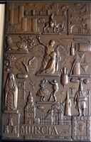 Murcia Fotografía de una placa de bronce representativa de Murcia, con elementos iconográficos significativos de la región, como una imagen alusiva a la Oración en el Huerto de Salcillo.Otros Archivos: Mbo/ 333 MEN/1318