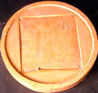 Mujer junto a un capitel romano Molde de escayola del negativo de una medalla donde se representa a una mujer de época romana junto a un capitel de la época donde apoya su mano que sujeta una rama junto a una paleta de pintor, una escuadra y un compás.