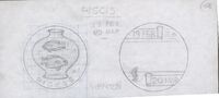 Piscis y los vientos Boceto a lápiz de dos caras de unas medallas con diferentes temas pero mismo significado en la relación de fechas, la primera con la imagen de un jarrón transparente donde se aprecia unos peces en su interior junto a las dos fechas correspondientes con la temporada de vientos.