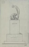 Proyecto de un monumento al zapatero Boceto a lápiz del proyecto a un monumento al zapatero donde de un pedestal de cierta altura se erige la figura de una mujer a la que le toman mediadas de sus zapatos un zapatero.