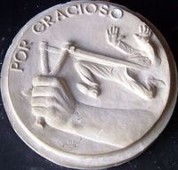 Por Gracioso Molde en positivo de escayola de una medalla donde se representa una mano estirando un tirachinas donde lanza a un señor junto al título “Por gracioso”. Es, prácticamente, un chiste visual.