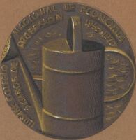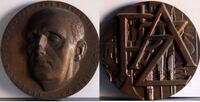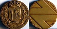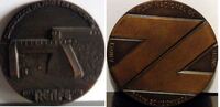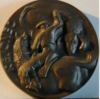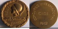 Renfe Fotografía de las aras d una medalla representativa del concurso internacional de C.I.C.E celebrado en el año 1952, con el retrato de perfil de un hombre con casco romano y la silueta de un tren.