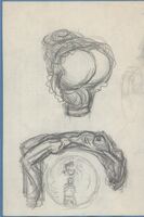Puño de bastón 2 Bocetos a lápiz de torsos desnudos de mujer en diferentes posturas y perfiles como estudios para un puño de un bastón, ya que la especie de maniquí no tiene cabeza ni brazos.
