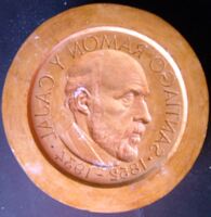 Ramón y Cajal Molde de escayola, con barniz de goma laca, de la cara de una medalla donde se representa el retrato de Ramón y Cajal.