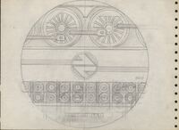 Renfe, Barcela Sants estación Central Boceto a lápiz de una cara de una medalla, donde se aprecia la imagen de unas ruedas metálicas de un tren y debajo sobre el fondo de los vagones del tren, el logotipo de la compañía ferroviaria estatal RENFE.por encargo de Renfe para medalla "Barcelona Sants Estación Central. Anverso Otros archivos relacionados: MBR/.1497 MBO/567