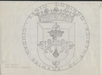 Reverso de la ciudad de Santo Domingo Boceto a lápiz del reverso de una medalla de la ciudad Primada de América, Santo Domingo, donde se aprecia un escudo con corona en la parte superior rodeada por la leyenda correspondiente al escudo.medalla Santo domingo ciudad Prima de America para Acuñaciones Españolas (anverso y reverso). Otros archivos: No tenemos constancia de la medalla?