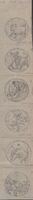Tira de una serie taurina Tira de una serie de bocetos a lápiz de unas medallas que representan escenas relacionadas con el toro y la fiesta taurina. Todas ellas son dibujos preparatorios en un primer momento del proceso creativo.