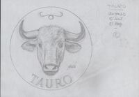 Tauro Fotografía de la cara de una medalla donde se aprecia el bajorrelieve con la imagen de toro en cuyas patas se aprecia la cartela correspondiente al signo del zodiaco que representaOtros Archivos: Mbo/ 309