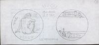 Virgo y la vendimia Boceto a lápiz de dos caras de unas medallas con diferentes temas pero mismo significado en la relación de fechas, la primera con la imagen de una mujer de espaldas desnuda como un signo del zodiaco, y la otra con las dos fechas correspondientes a la época de la vendimia que corresponden con las del zodiaco.