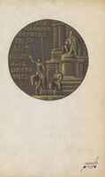 XIX Asamblea General Anverso de la medalla conmemorativa del XIX Asamblea General, con la escena de una escalinata en la que aparece Quijote y Sancho, y la que podría ser la esfinge de don Miguel de Cervantes.