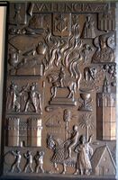 Valencia Fotografía de una placa de bronce representativa de Valencia, con elementos iconográficos significativos de la región. Entre ellos, la Dama de Elche, que actualmente se encuentra en el Museo Arqueológico Nacional.Otros Archivos: Mbo/ 334