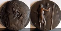 Viese sus trabajos y sudores perdidos -V Cemtenario del descubrimiento de américa "Prisión de Colón" Molde de escayola, con barniz de goma laca, del negativo de la cara de una medalla representativa del cautiverio de Cristóbal Colón donde se le ve abatido junto a la leyenda que dice “viese sus trabajos y sudores perdidos”.Para Numismatica Iberica, OTROS ARCHIVOS: MBO/420+477+478 MBR/1356