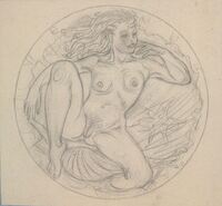 Venus Boceto a lápiz de la cara de una medalla donde se ve la figura de la diosa Venus, representada por medio de la imagen de una mujer desnuda sentada sobre una gran concha.Serie de la colección erótica de Manolo Prieto.