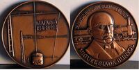Barcelona - Mataró Fotografía de las caras de la medalla representativa del 25 Aniversario del ferrocarril Barcelona y Mataró, con el retrato de Miguel Biada Bunyol junto a la silueta de la cabecera de un tren avanzando por los raíles y estructura ferroviaria.