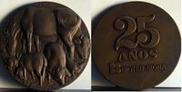 Bioter - Biona Fotografía de las caras de una medalla conmemorativa de los 25 años de Bioter -Biona, en cuyo anverso se aprecia un grupo formado por animales representados en distintas posiciones, junto al logotipo y los números conmemorativos de la marca representada.realizada para Bioter Biona, SA. Anverso y reverso. Otros archiivos: MBO/571-572