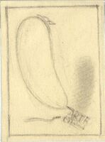 Arte Grande En un dibujo enmarcado por líneas suaves y bajo el lema de “arte grande”, en la parte inferior, se representa una figura, hacia la derecha, con el formato de una berenjena. Una mancha grisácea a la izquierda configura la sombra de dicho elemento. No hay ninguna presencia de color.